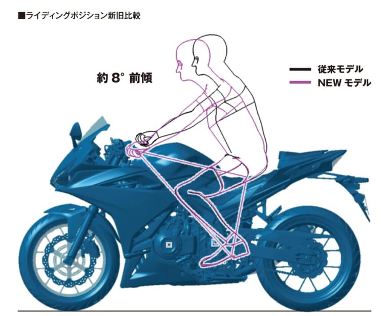 【スポーツ性と快適性のバランスを追求したポジション】前モデルよりハンドル位置を下げ、若干前方へ。上半身が前傾することでスポーティなポジションとなった。とはいえアップライトな部類に入り、無理なく幅広い用途にフィットする。