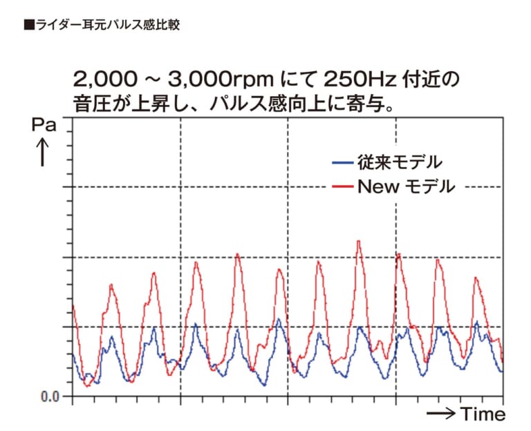 【走る喜びを盛り上げてくれる刺激的な排気音】中低回転域の音圧を高めることで、歯切れのよいパルス感が楽しめる。高回転域では高揚感を演出するなど、エキゾーストノートのチューニングにこだわっている。