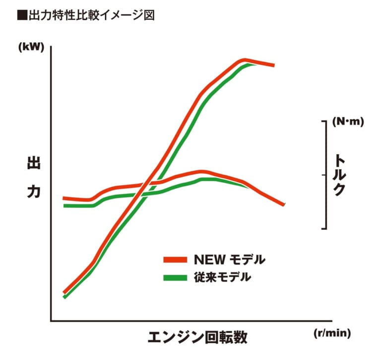 【トルクアップで軽快かつキビキビ】3000~7000rpmの常用域でのトルクを、前モデル比で3~4%高めた。扱いやすさとキビキビした走りを両立している。