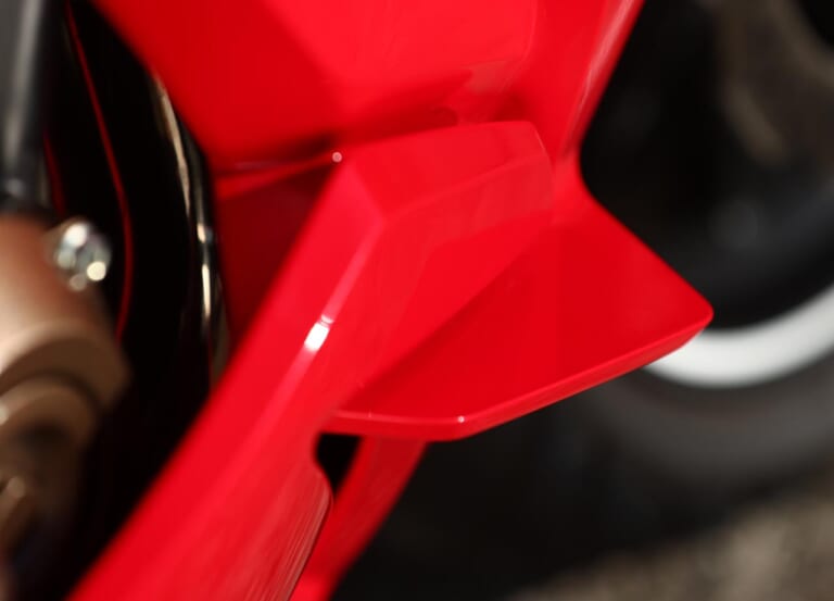 【エアマネジメント】導風ダクト構造や排風レイヤー構造を採用し、カウルの造形はシンプルに見えて実は複雑。凝った作りはビッグバイクに引けを取らない。