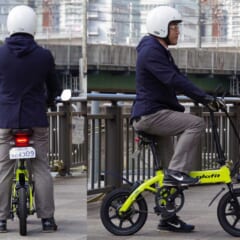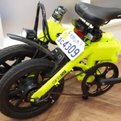 【glafit GFR-02】●車両区分:原付一種 ●全長1250×全幅600×全高950mm ※折り畳みサイズ:約650×約450×約600mm ●車軸間距離:900mm ●車体重量:未公表※1 ●駆動方式:インホイールモーター ※ペダル走行時:チェーン ●定格出力:250W ●最高速度:約30km/h ※2 ●駆動用バッテリー:リチウムイオンバッテリー ●バッテリー電圧/容量/充電時間:36V/9.6Ah(0.345kwh)/約3.5時間 ●一充電走行距離:約25km ※3 ●ブレーキ:F/R=ディスク ●タイヤサイズ:F/R=14×2.125 (Eバイク専用タイヤ) ●車体色:フラッシュイエロー マットベージュ シラハマホワイト タイドブルー ●乗車定員:1名 ●メーカー希望小売価格:19万8000円 ※1:GFR-01は約18kg ※2:運転者の体重/斜度/走行状況等の使用条件により異なる ※3:使用条件により異なる