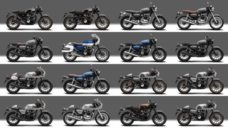 GB350のモノトーンもいいが、インド仕様ハイネスCB350のツートーンカラーや赤いエンブレムも似合いそう。