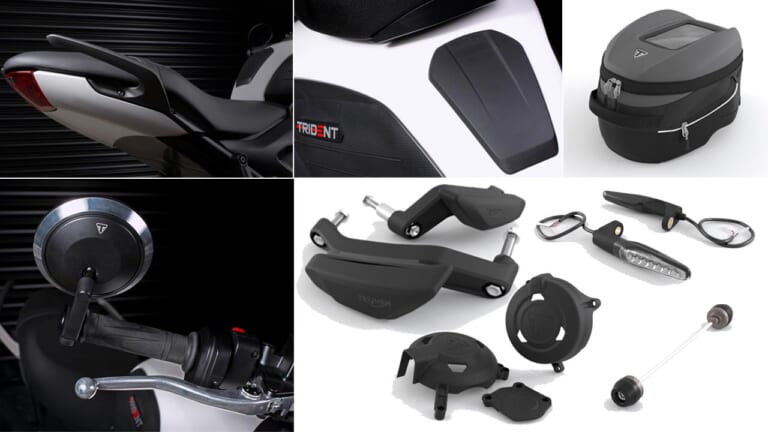 搭載されているのは、ネーミングからも分かるように660ccの水冷並列3気筒エンジンだ。だが、ストリートトリプルSと排気量は同じであっても(RSとRは765cc)ボア×ストロークが異なる。具体的にはボアを2mm小さくしてストロークを2.6mm伸長している。このためにわざわざ67点ものパーツを変更していることからも、トライデントに賭ける意気込みが伝わってくるだろう。最高出力はストリートトリプルSの95.2psに対して81psとやや低めだが、3600rpm以上の広範囲で最大トルクの90%以上を発揮するというから、日常域での扱いやすさは想像に難くない。そして、純正アクセサリーでクイックシフターを用意するあたり、スポーツライディングを楽しめる要素も十分期待できるだろう。