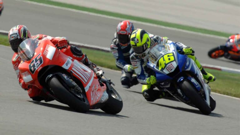 ロッシ選手は前年あるいはさらに前の年くらいから、「ブリヂストンタイヤは脅威になる」とチームやミシュランに訴えていたと耳にしたことがあります。そして2007年第3戦でのミシュランのタイヤトラブル。このあたりで、ロッシ選手の怒りを買ったのかもしれません。じつはこの年、シーズン中盤にロッシ選手が「ブリヂストンタイヤを使えないならヤマハから移籍する」と言い出して、これがヤマハとブリヂストンタイヤ、さらにオーガナイザーのドルナスポーツを巻き込んだ大騒動に発展するのですが、その火種はこのレースでつくられたのかもしれません。