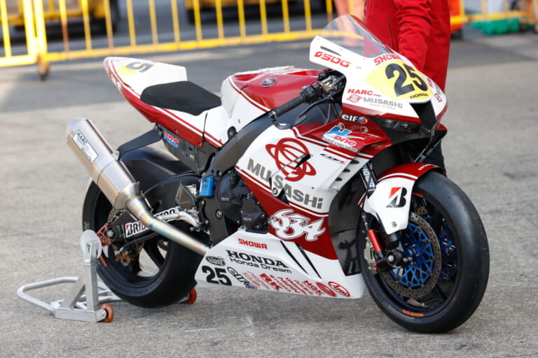 JSB1000クラスにエントリーする #25名越哲平選手は、MuSASHi RT HARC-PRO.Honda でCBR1000RR-Rを駆る。タイヤはBRIDGESTONE。