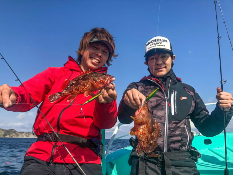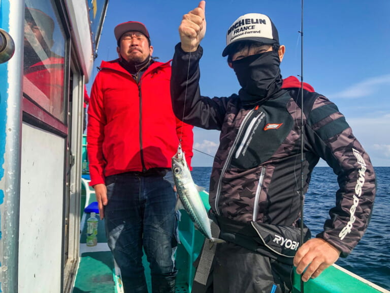 今回は釣具メーカー、ジャッカルの吉岡進プロ(ヨッシー)と同船することができました。隣に並んで釣りをさせてもらったんですが、やっぱりうまい! 初めてのSLJでよく分からなかった僕に、竿のシャクリ方などいろいろ教えてくれたヨッシー。的確なアドバイスのおかげで、僕もサバやカサゴを釣ることができました。