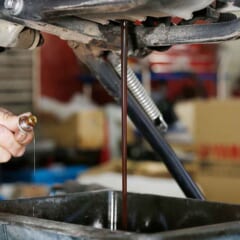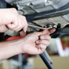 スキットプレート(アンダーガード)が付いてる場合は外そう。外さなくても作業できる場合も、あえて外した方が作業しやすくなる。