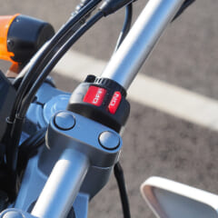 スイッチは防水仕様なので、雨天時でも安心して使用できる。φ22.2mmのハンドルに適合している。