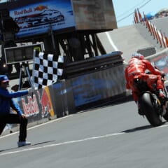 第11戦アメリカGPでチェッカーを受けるケーシー・ストーナー選手。