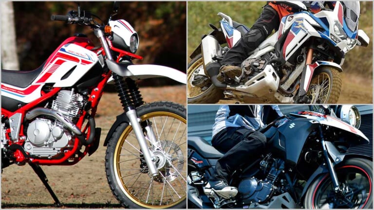 前回王者のアフリカツインは、’20で1000→1100に進化したが、さすがに今回のセローには敵わず、2位。スズキVストローム250が前回と同じ3位に着けた。