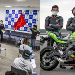 こちらは2021年4月3日にツインリンクもてぎで開催された「ニンジャ チームグリーントライアル2021 inもてぎ」にて。アドバイザーは(左から)五百部徳雄さん、川島賢三郎さん、亀田勝太さんだった。サーキットを安全に楽しむため、ブリーフィングから先導までしっかりサポート!