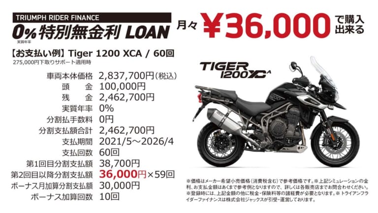 対象モデル:タイガー1200XRT、タイガー1200XCA、タイガー1200デザートエディションの新車