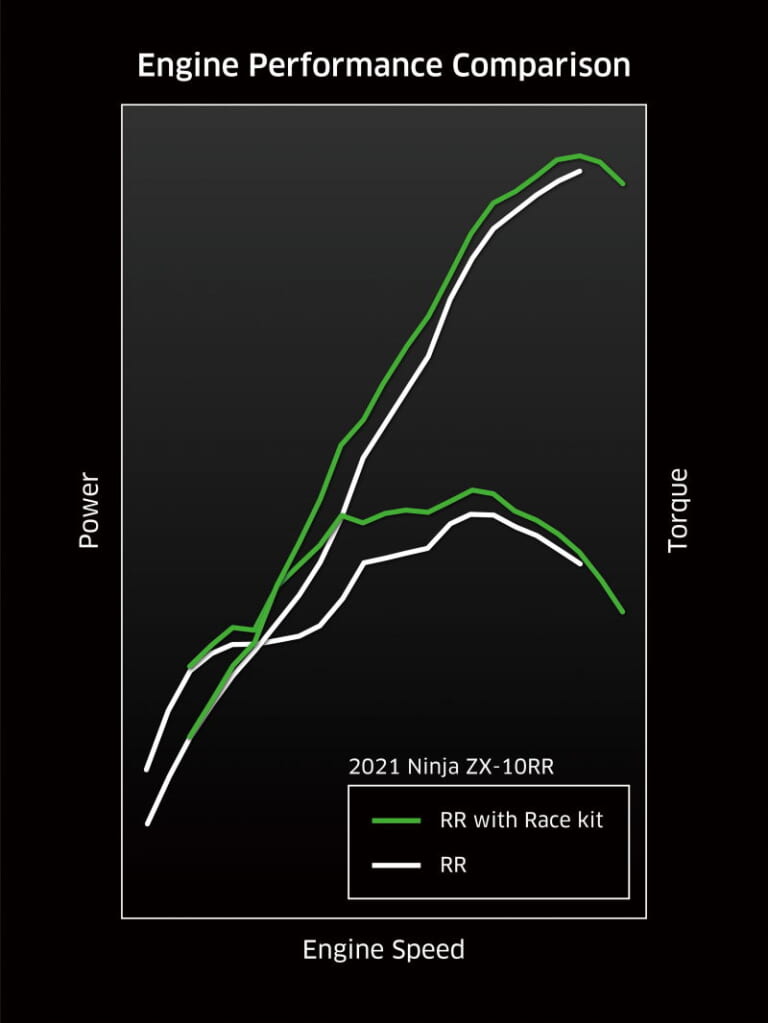 シングルシートが象徴するように、エンジンの高回転化や専用ホイールで戦闘力を高めたレース用ホモロゲーションモデル。通常版より+1psの204psを発生する。SBKで実績のあるPankl社製チタンコンロッドを2019年型から採用するが、新たに同社製の軽量ピストンも投入。新設計カムシャフトやバルブスプリングも与え、レブリミットを1万4300→1万4700rpmとした。さらにパワーバンド自体も500rpm高めることで、限界域の性能を向上している。最高出力は不変ながら、ラムエア加圧時は10R/RRともに従来比1.1ps増の213.1ps/214.1psをマークする。