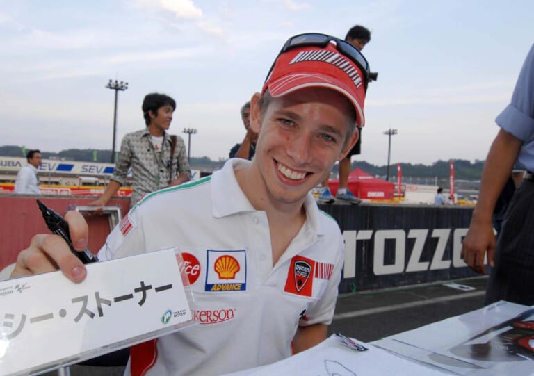 2007年、日本GPのレース前にファンサービスするストーナー選手。その裏には大きなプレッシャーもあった。