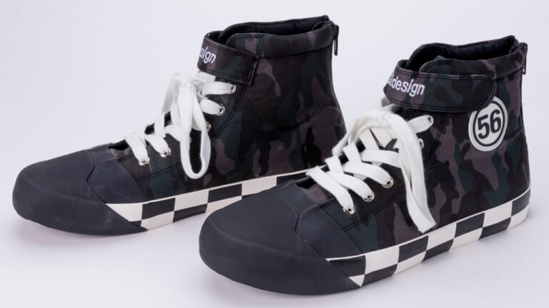 【フィフティシックスデザイン ハイカット ライディングシューズ】●サイズ:XS S M L XL ●色:灰 赤 黒 黒×赤 迷彩 ●価格:1万7600円