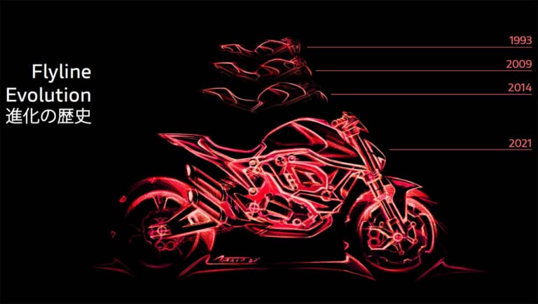 低く構えた丸目ヘッドライトと、バッファローの背中を思わせる燃料タンクのライン、そしてニーグリップ部分のエグリがモンスターらしさとして継承されてきた。