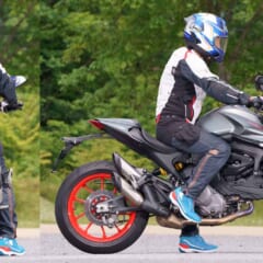 ドゥカティ新型モンスターのライディングポジション|ライダーは丸山浩 身長168cm/61kg……足着きのよさ、手を伸ばしたところに自然にあるグリップ、フラットでワイドなハンドルバーが従来のモンスターだったが、新型は違う。