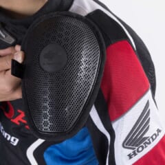 【ホンダ ライトニングメッシュジャケット】●プロテクター:肩 肘 背 ●サイズ:M L LL 3L 4L ●色:トリコロール 黒 灰 ●価格:2万5080円(M/L/LL) 2万6180円(3L/4L)