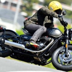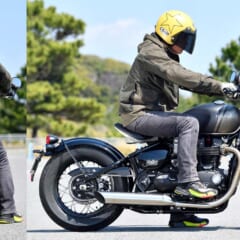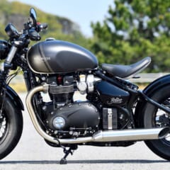 ボバースタイルを取り入れたメーカーカスタム的な位置付けの「ボンネビルボバー」。太いフロントタイヤに特徴的なサドルシート。ここまでキャラの立った車体に、専用チューニングが施されたクラス最大1200ccの元気なバーチカルツインエンジンを搭載。見た目からすると乗りにくそうだが、走ってみるとなかなかどうしてよく曲がる。しかも、ちょっとクセがあるところに「この見た目で乗り味が普通じゃつまらないでしょ?」とい […]