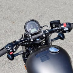 フォワードコントロールのステップポジションと一文字タイプのバーハンドルがボバーらしいライディングスタイルを作り出す。コーナーでのフィーリングは特徴的な見た目からするとかなり自然。