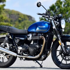 モダンクラシックシリーズの中ではエントリーモデル的な位置付けの「ストリートツイン」。とはいえ排気量は900ccである。アクセルを開けた瞬間、力強い加速が楽しめる一方で、高速道路での巡航走行もラクラク。トラクションコントロールも装備し、走行モードを“ロード”から“レイン”に切り変えれば雨天走行も安心。クラシカルなスタイリングだが、素直なコーナリング特性と電子制御が相まって、ツーリングマシンとして相当 […]