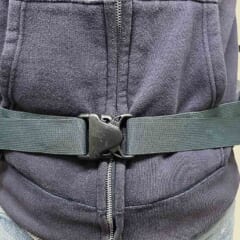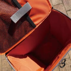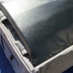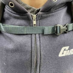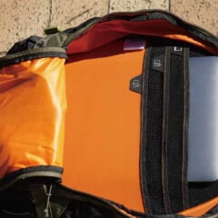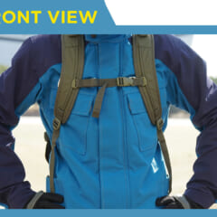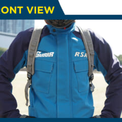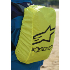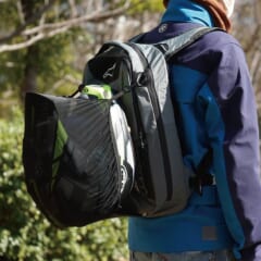 バックパック本体に装備する4つのバックルと付属のH型固定ベルトにより、簡単にマシンに装着可能だ。レインカバーも付属しているので、突然の雨でも安心だ。