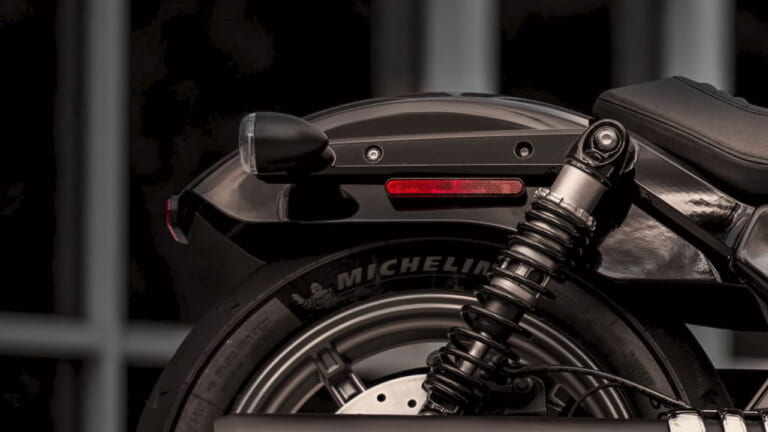 装備重量は228kgと軽量で、φ43mm倒立フロントフォーク/ピギーバックタイプのリヤショックは、ともにSHOWA製フルアジャスタブル。スポーツスターの名の通り“スポーティさを取り戻す”ため走りのパフォーマンス追求にも抜かりはない。タイヤはダンロップ製GT503だ。