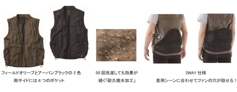 ちなみに、今回発表した空調ウェアで使用する別売りの「ハーフバッテリー8V セット」は、この秋冬に登場する注目の製品「ヒーターベスト」、別名“着るコタツ”とも接続可能。ハーフバッテリーを1台持つことで、ウェアのみの購入で効率的に猛暑・極寒対策が可能になるという。