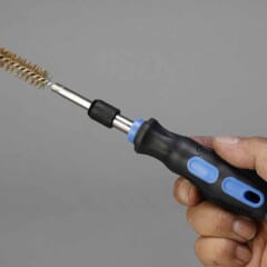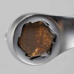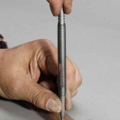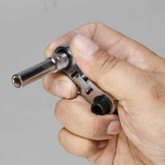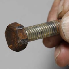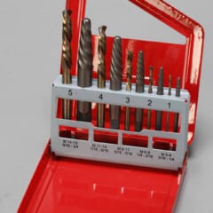 逆回転ドリルにはAC100Vではなく充電式DCバッテリーのドリルドライバーが必要。専用ドリルでもボルトの中心に穴を開けることが重要だ。