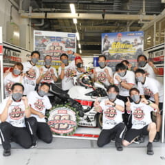 [左]全日本ロードレース第5戦 第53回 MFJグランプリ スーパーバイクレース in 鈴鹿 JSB1000のレース1で2位、レース2では4位に入った名越哲平選手。[右]同グランプリ ST600で3位入賞した埜口遥希選手。ともにSP忠男レーシングチームのDNAを受け継ぐ“目玉ヘルメット”を被る。JSB1000チャンピオンの中須賀克行選手も同じく目玉ヘルメットだ。