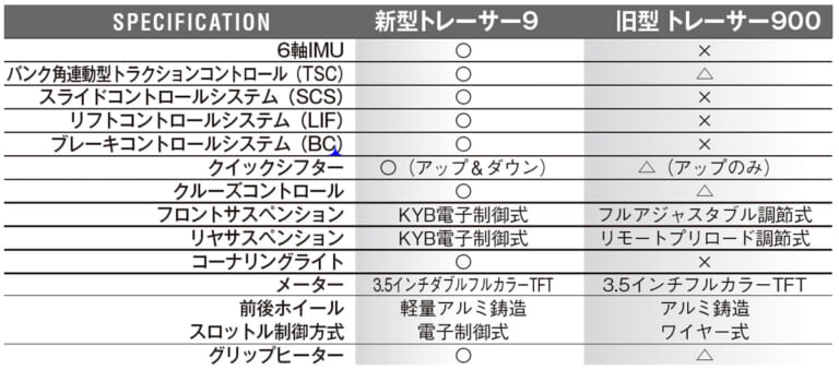MT-09の並列3気筒エンジンとフレームを受け継いだツーリングモデル「トレーサー900」。ストロークの長いサスペンションを持ち、シート高も2段階に調整できるなど、オンロードを中心にマルチパーパスな舞台[…]
