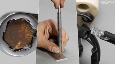 KTCの多種多様なハンドツールの中から、本記事では作業効率向上に役立つ工具を紹介しよう。特に注目したいのが、冒頭で紹介する、6.3sq.のラチェットハンドルに9.5sq.のソケットを取り付ける変換アダプタに早回し機能を追加した「BAE23」。20年近く前に発売された製品ながら、コンパクトな6.3sq.ラチェットハンドルの特性を生かした薄くコンパクトなデザインと、アダプタ単体でも早回しに使える機能性で、デキる名脇役として活躍してくれる。他に細かな作業がしやすい軽量小型の工具やちょっとしたアイデアツールもピックアップする。