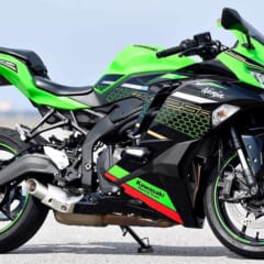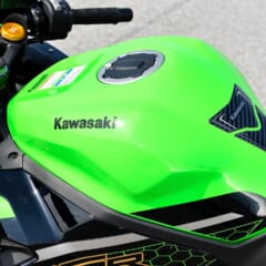 【'21 KAWASAKI Ninja ZX-25R SE KRT EDITION】■全長1980 全幅750 全高1110 軸距1380 シート高785(各mm) 車重184kg ■水冷4スト並列4気筒DOHC4バルブ 249cc 45ps[33kW]/15500rpm 2.1kg-m[2.1Nm]/13000rpm 変速機6段リターン 燃料タンク容量15L ■ブレーキF=ディスク R=ディスク ■タイヤF=110/70R17 R=150/60R17●色:緑×黒 ●価格:91万3000円