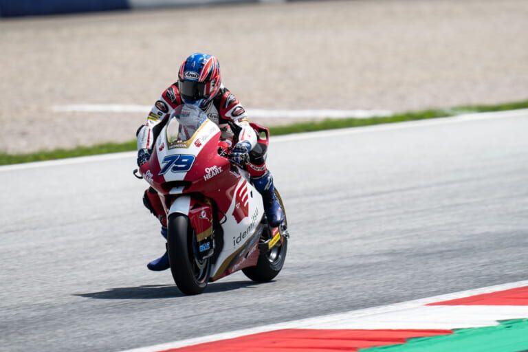 2週連続でレッドブルリンクで開催されたMotoGP。第11戦オーストリアGPは、天候の影響で大波乱のレースになりましたね。MotoGPクラスは、決勝レースが始まる前から小雨がパラついていたようで、1周目から白旗が掲示され、フラッグ・トゥ・フラッグが宣言されました。全車がスリックタイヤで走り出していましたが、途中で路面状況が変われば、レインタイヤを履いたマシンの乗り換えが可能ということになります。