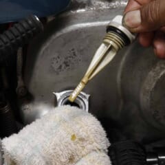 オイル交換後、500キロ程度しか走っていなかったらしいが、エンジンオイルはそれなりに汚れていた。原付一種排気量なので、常時高回転で走っていたのだろう。