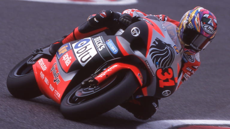 イタリアメーカーのアプリリアに日本人の僕が加入したのは’97年のこと。以降、’01年まで5シーズンにわたってお世話になったわけですが、居心地はめちゃくちゃよかったです。自分ではなぜか分かりませんが、当時社長だったイヴァーノ・ベッジオさんにすごくかわいがってもらいました。ベッジオさんの自伝を奥さんが出版した時、僕とロリス・レジアーニのふたりだけインタビュー記事が載ったんですよ。ベッジオさんは’18年に73歳で亡くなられましたが、常々「テツヤは特別な存在だ」と言ってくれていたそうです。