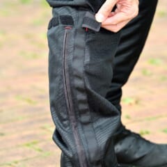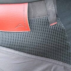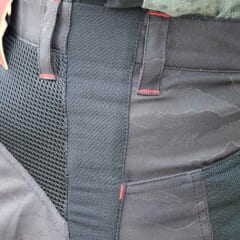 【クシタニ エアーライドワークボトムスK-2373】透湿防水生地を使用したライドワークボトムスのメッシュバージョンで、強度が求められる部分にはカモフラ柄のジャガード生地を組み合わせている。シートと接する股部分にはグリップ力の高いフッ素加工牛革を用いるなど工夫が満載だ。●色:黒 ●サイズ:M L LL XL L/3W ●価格:3万3000円