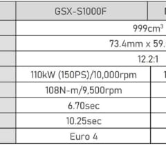 スズキの社内テストでは、GSX-S1000Fに対し0-200m加速で0.06秒、0-400m加速で0.1秒短縮している。