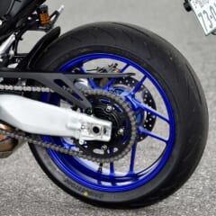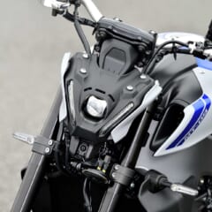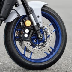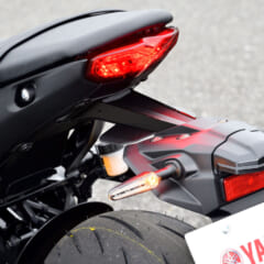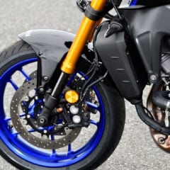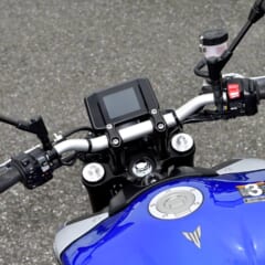 MT-09もハンドル位置とステップ位置を2段階に調整可能。ラジアルマスターシリンダーやテーパーバーの採用はトレーサーと同様。