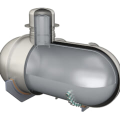 すいそ ふろんてぃあ内の海上輸送用液化水素タンク。二重構造の隙間、約70cmを真空とするなどの設計により、熱伝導や熱対流が起きない構造となっている。つまりマイナス253度を保つための冷却などは不要。
