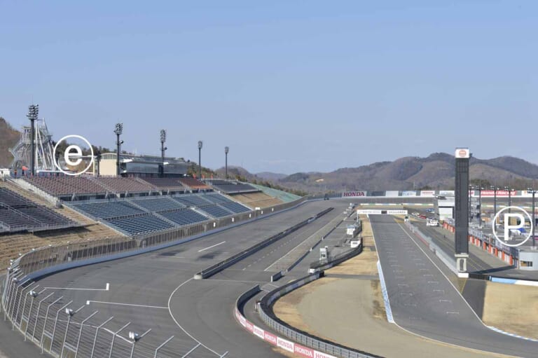 写真はツインリンクもてぎで、右に見える(P)がパドックで、左の(e)はイベント会場。これらを結ぶ地下通路を嫌になるほど往復するのが、レース関係者や取材記者にとっての、もてぎ名物である。