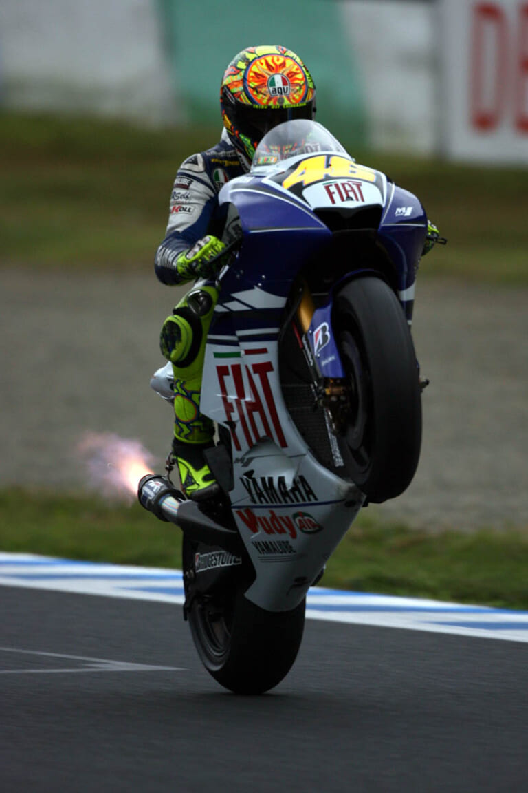 初日、2008年9月26日(金)のフリー走行で3番手に付けるバレンティーノ・ロッシ選手。土曜日の予選では4番手となり、そこからチャンピオン獲得へ挑むことになった。