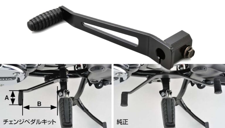 これはシーソー式チェンジペダルのノーマルを通常タイプに変更できるもので、ペダル位置や足のサイズなどの兼ね合いでシーソー式はうっかり意図せずシフトアップしがちとか、そもそもGB350は好きだがシーソー式は好みじゃない、といったユーザーには待望のキット発売といえる。価格も3960円とリーズナブルなので、お悩みの方は試してみる価値がありそうだ。