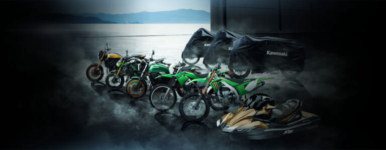 カワサキは北米で2022年モデルを一挙発表。ティーザーでの宣言通り、北米では初登場の6モデルを公開した。その内訳は、まず欧州で発表済みの3車で、オーリンズとブレンボで足まわりを強化したZ900RS SE、同じくオーリンズ&ブレンボのZ900 SE、そして9月27日に初披露された2気筒のZ650RSだった。続いて、KLX230をベースにサスペンションをモディファイしシート高を2.2インチ(約56mm)下げたKLX230S/KLX230S ABS、そしてモトクロッサーKX450をベースとした限定マシンKX450SRの2車、最後に(バイクではなく)JET SKIというラインナップだった。