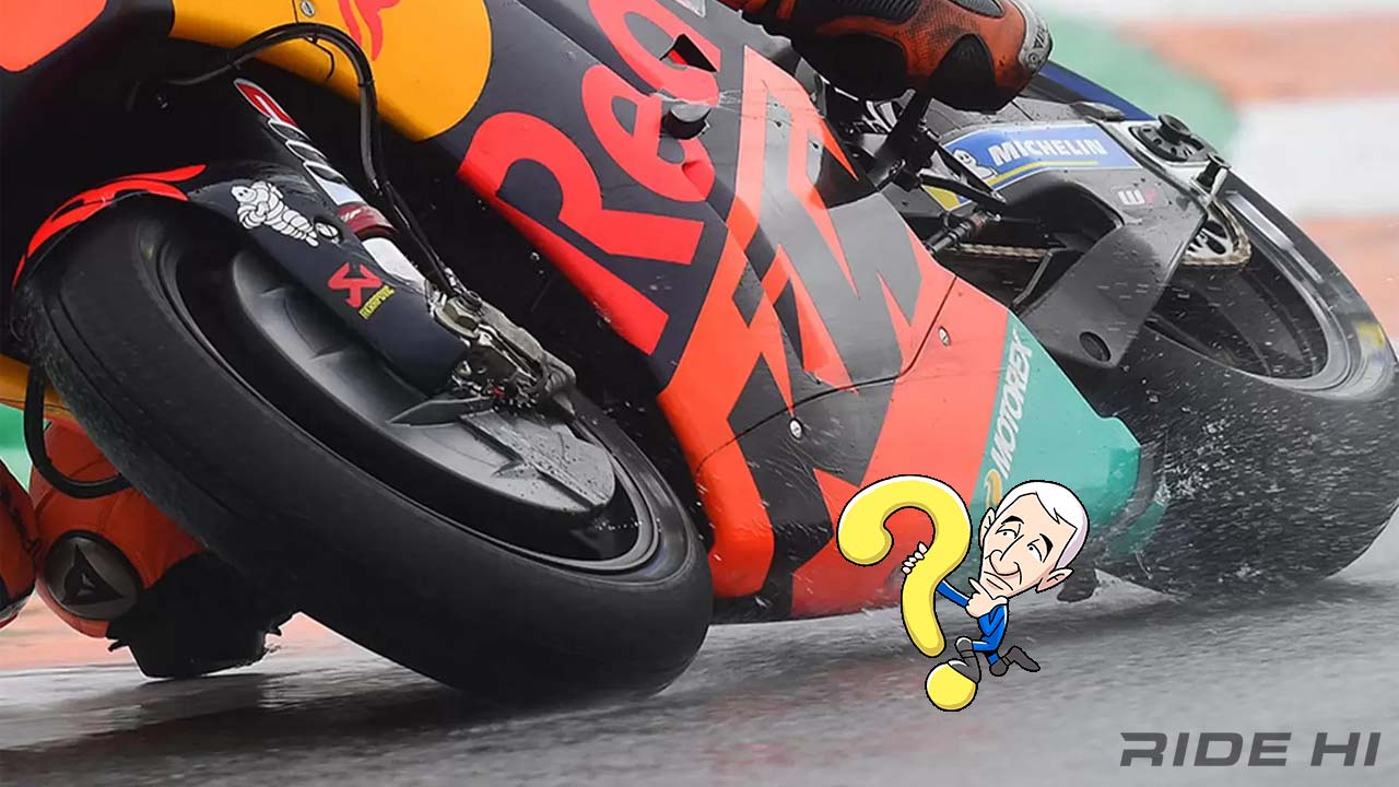 MotoGPでは、雨でも膝どころか肘をするほど深くバンクできるのを見ていましたが、先日サーキットに出かけたとき、不運にも雨が降りだし、走行シーンを見ていると一般のライダーがレインタイヤに交換して信じられないペースで走っていました。レインタイヤは溝が多いだけの違いではない気がします。なぜあのような走りができるのでしょうか?