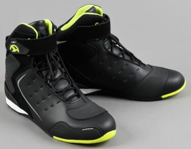 レーシングブーツからライディングシューズまで揃えるイタリアのメーカー「ジャンニ・ファルコ(Gianni Falco)」を、南海部品が日本で独占販売。「レノックス」は一見するとカジュアルなハイカットスニーカーだが、アッパーはフルグレインオイルドレザーで、通気性の高いエアーテック素材をライニングに使用した防水仕様。エンボス加工した表皮が独特の風合いを見せる。かかととつま先は補強され、足首にはABS樹脂を成型したカップを内蔵してプロテクション性を高める。ソールはオリジナルのファルコハイグリップゴムを採用。シューレースとサイドジッパーのコンビネーションクロージャーにより、編み上げスタイルのハイカットを容易に脱ぎ履きできる。