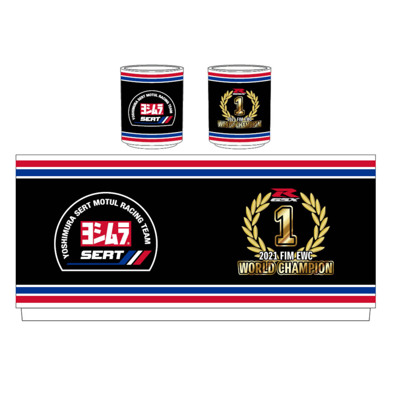 スズキは今回、これを記念して「チャンピオン獲得記念グッズ」の予約販売を行うと発表した。最終戦のモスト6時間で表彰台に立ったチームが来ていたTシャツのレプリカモデルやマフラータオル、マット、そして湯呑までラインナップされる。