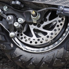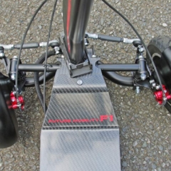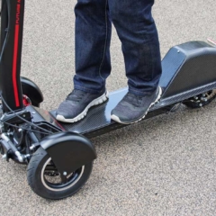 【FUTURE FUTURE MOBILITY F1】■全長×全幅×全高(mm):1000×600×1000 ■シート高:640mm ■車体重量:18.5kg(バッテリー含む) ■原動機:ホイールインブラシレスモーター ■定格出力:600W ■車両区分:原付一種(ミニカー) ■最高速度:45km/h ■駆動用バッテリー:リチウムイオンバッテリー ■バッテリー電圧/容量/充電時間/単体重量:48V/16Ah (768Wh)/~4時間/約3.5kg ■一充電走行距離:30km ■ブレーキ:F/R=ディスクブレーキ ■タイヤサイズ:F=10×2.125 R=10×3.2 ■サスペンション:マルチリーンステアサスペンション(特許出願済み) ■機構:イスの取り外し/ハンドルポストの折り畳みが可能 ■ボディ:カーボンモノコックフレーム ■乗車定員:1名 ●価格:47万800円