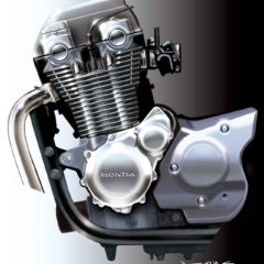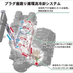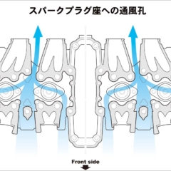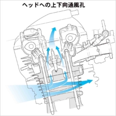 空冷式オイルクーラーを備えるほか、流路にバイパスを設けることで、プラグ座の冷却効果は抜群だ。ちなみにクランクケースは水冷のCB1300譲り。