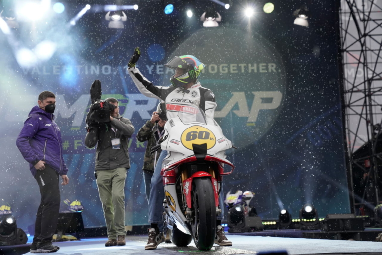 2021年11月7日にバレンシアGPで自身にとって最後のグランプリ決勝を終えたロッシは、11月25日にはミラノショーで有終の美を飾るイベント「One More Lap(ワン・モア・ラップ)」に出演。小雨の降りしきる中、ヤマハが用意した60周年記念デザインのYZR-M1に乗って現れた。